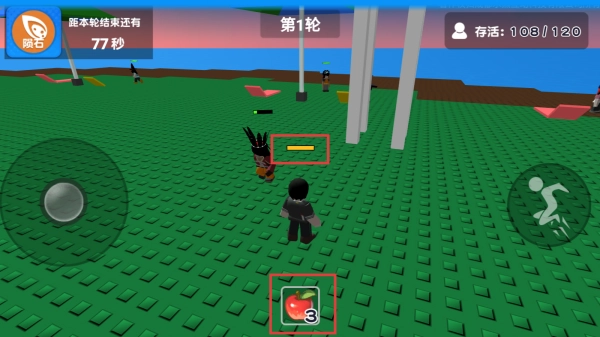 3、用左侧摇杆移动角色,右侧按键进行跳跃,关注【存活】人数变化,灵活躲避危险,争取撑到最后。