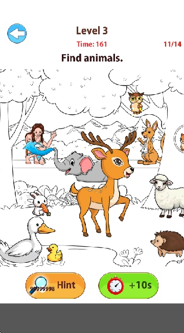 第三关的任务是找出所有动物,这是对你眼力的考验,你可以利用下方的提示以及加时道具来完成挑战。