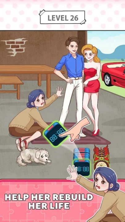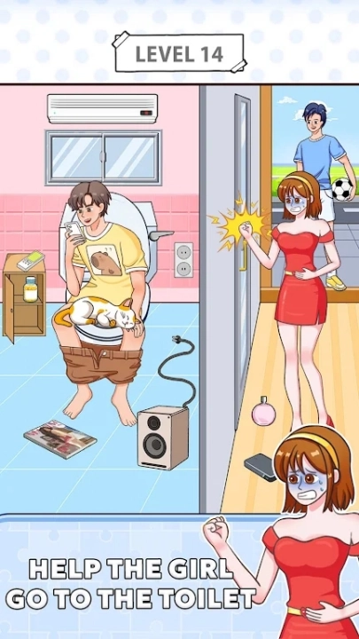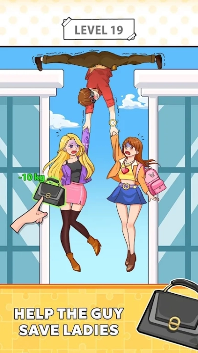 第二关的任务是帮助情人逃离,需要在周围寻找可用的道具,以便情人能够借助其顺利下滑脱身。