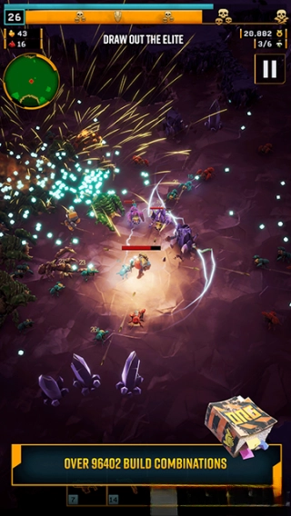 游戏采用自动射击机制,玩家通过消灭虫群积累经验值提升等级,每次升级时都能从多个强化选项里挑选其一。