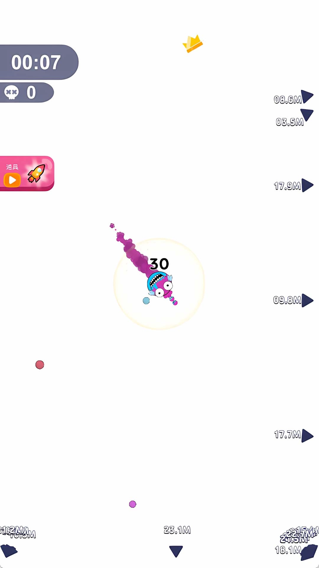 单局快节奏决胜:每局时长控制在3到5分钟,玩家可借助体型成长与精准操作快速决出胜负,非常适合利用碎片化时间进行娱乐。