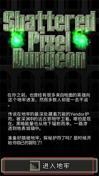 点击【进入地牢】按钮即可开启冒险之旅,探索【Shattered-Pixel-Dungeon】里随机生成的地牢,迎接未知敌人与陷阱的挑战。