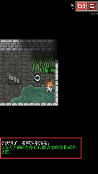 获得【地牢探索指南】后,点击【日志】按钮查看书页,就能了解地牢探索的关键技巧与提示。