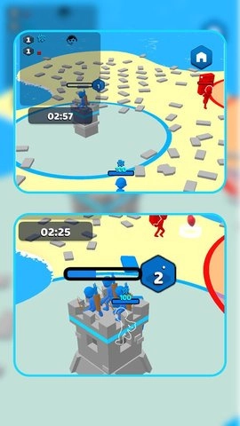 在一座美丽而神秘的海岛上,“有你没我哇咔咔”游戏里活跃着三支不同的部队。这座海岛资源富足,木板是建造建筑的主要材料。为了守护各自的领地并拓展势力范围,各个部队都着手搭建防御塔。这些防御塔不只是防御外敌的核心设施,更是各支部队实力的直观体现。每支部队都期盼着通过抢夺木板来提升防御塔的等级,进而强化自身的防御能力与攻击范围。