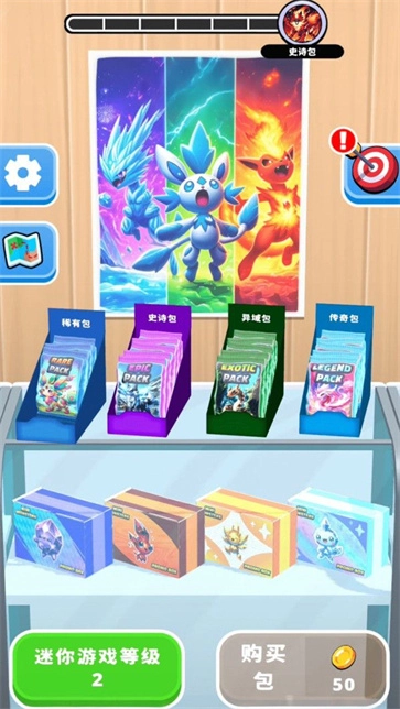 通过完成挑战获取金币,用金币兑换卡包,以此逐步提升卡牌的收集进度。