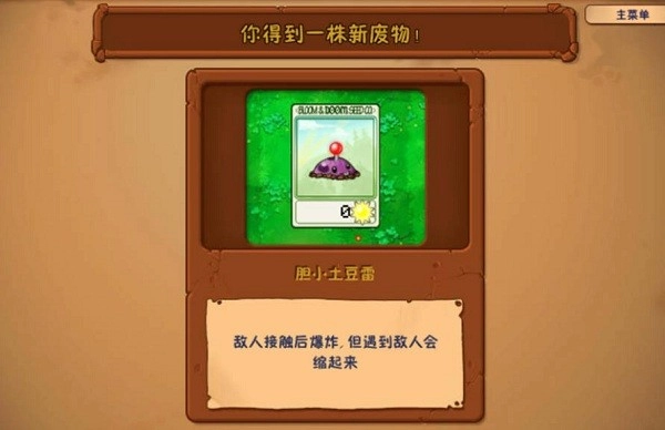 前面的僵尸比较简单,通过后获得新植物地雷向日葵