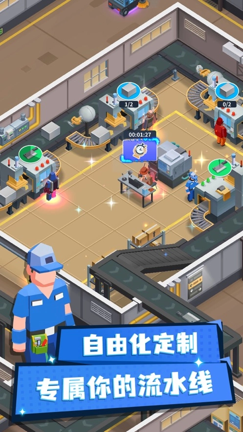 收集各类不同的矿场资源进行兑换,用心培养员工开展新的培训任务,升级后勤团队以保障整个工厂的运转,打造属于你的钢铁帝国近在眼前。