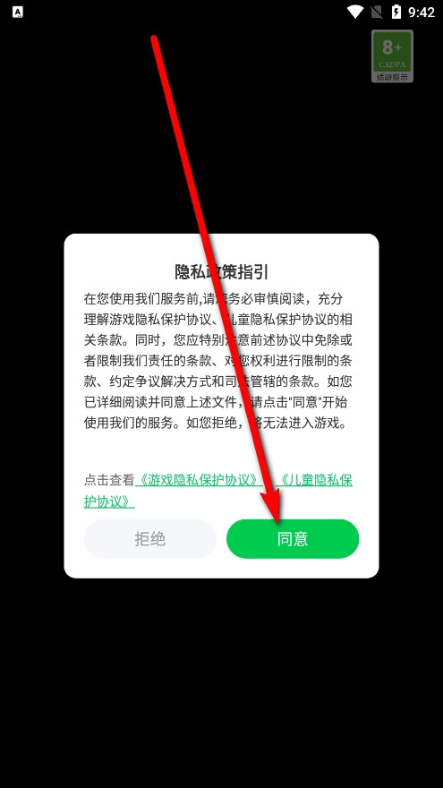 仔细阅读游戏隐私政策指引,点选【同意】进入。