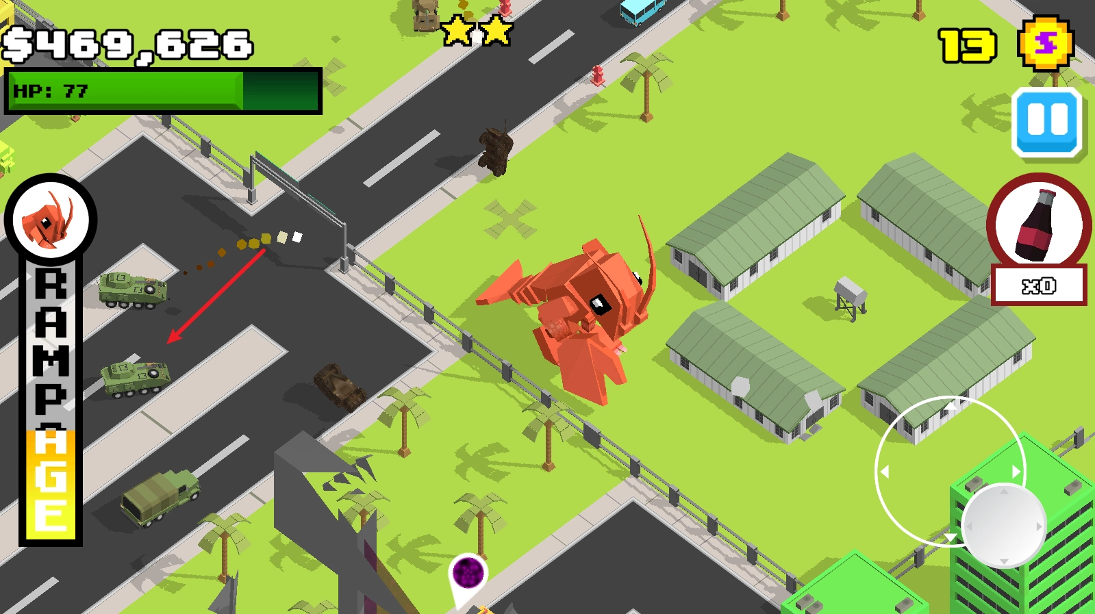 粉碎城市(Smashy City)是一款画风Q萌可爱的休闲小游戏。在游戏里,玩家能操控萌萌的小怪物破坏城市,通过摧毁大楼、汽车获取分数。不过破坏并非毫无约束——随着破坏物品增多,会出现更多警车、坦克、直升机对你发起攻击,你得一边躲避一边破坏,以此冲击更高分数!此外,游戏内有数百种不同怪物可供解锁,还能对它们持续强化升级,提升怪物属性,助力你破坏更多建筑!