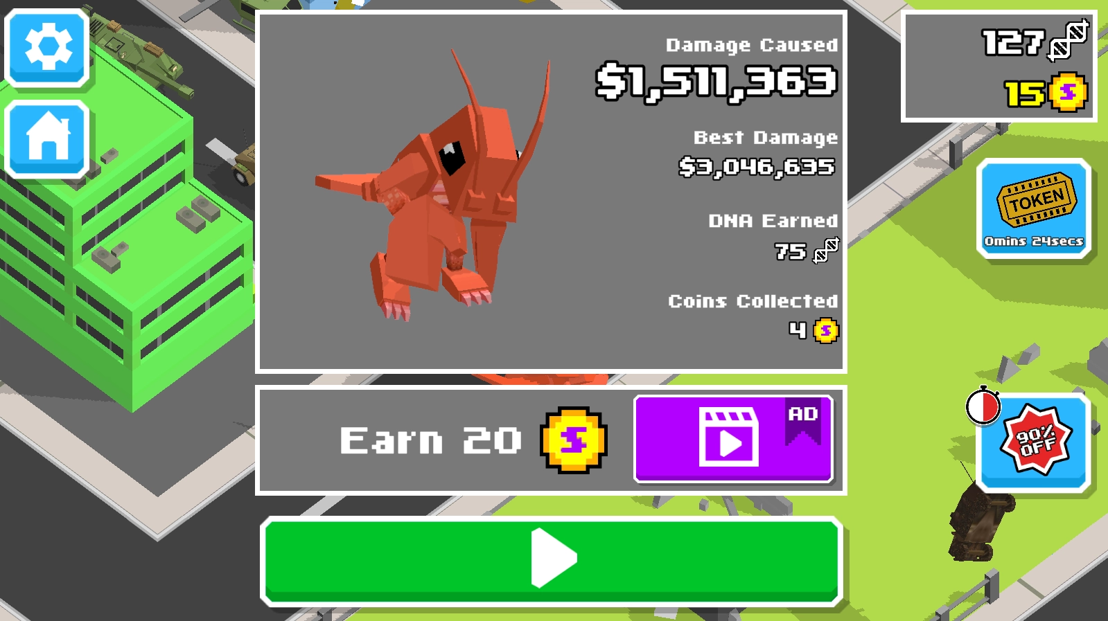 游戏里有超过50个Q萌可爱的怪物可供解锁,每个怪物都能通过升级来强化属性,从而更尽情地进行破坏。