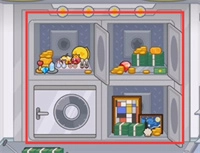 来到银行二楼后,打开保险柜,按照图形提示找到钻石、红心、星星和贝壳,并依次放入保险柜中,保险柜就会开启,里面藏有许多宝物。