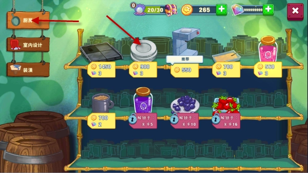 在左侧选择厨房这一栏,就能看到各种厨具了。
