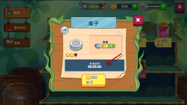 挑选厨具并点击升级按钮,之后只需耐心等待送达时间结束,厨具的升级操作就完成了。