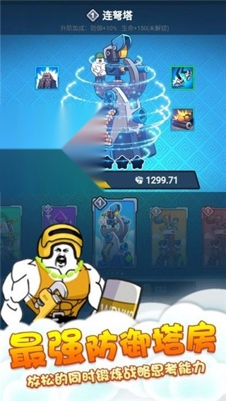 防御塔共有四种不同形态,尽管它们在外观和攻击模式上存在一些区别,但所提供的属性加成完全一致,均为提升10%防御与150点生命值。具体选择哪种形态主要取决于个人偏好,我个人更倾向于连弩塔,毕竟机关枪造型看起来确实更帅气些。这四种防御塔的碎片都能通过商店观看视频来获取,获取难度不算高,只是需要花些时间看视频,略显繁琐。