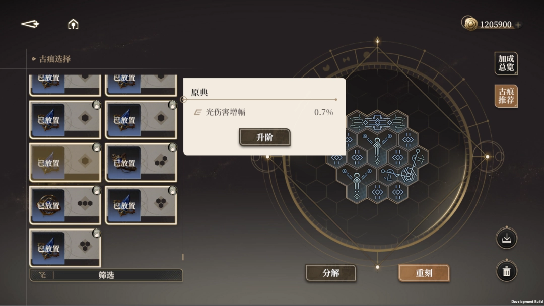 相较于古骸,古痕移除了套装效果,降低了随机性,进度周期也有所缩短。玩家能够依据角色特性来选择古痕,并且可以自行DIY放置。
