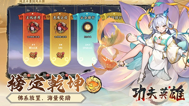 《功夫英雄》是一款主打休闲体验的国风放置类冒险战斗游戏。游戏内提供了涵盖多个种族、不同品质的英雄角色供玩家收集,每位英雄都具备独一无二的专属能力。玩家既可以通过抽取,也能借助合成的方式,获取更为强力的英雄。在战斗时,玩家最多可同时派遣5位英雄上阵,所以能够依据各个角色的特性,灵活组合搭配出属于自己的小队阵容。
