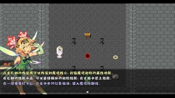 开始战斗时,请留意屏幕上的提示文字:点击右侧的传送阵,即可前往废塔核心;而提升魔塔初始属性的功能,则位于左侧的技能界面,通过这里可以解锁额外的初始技能。