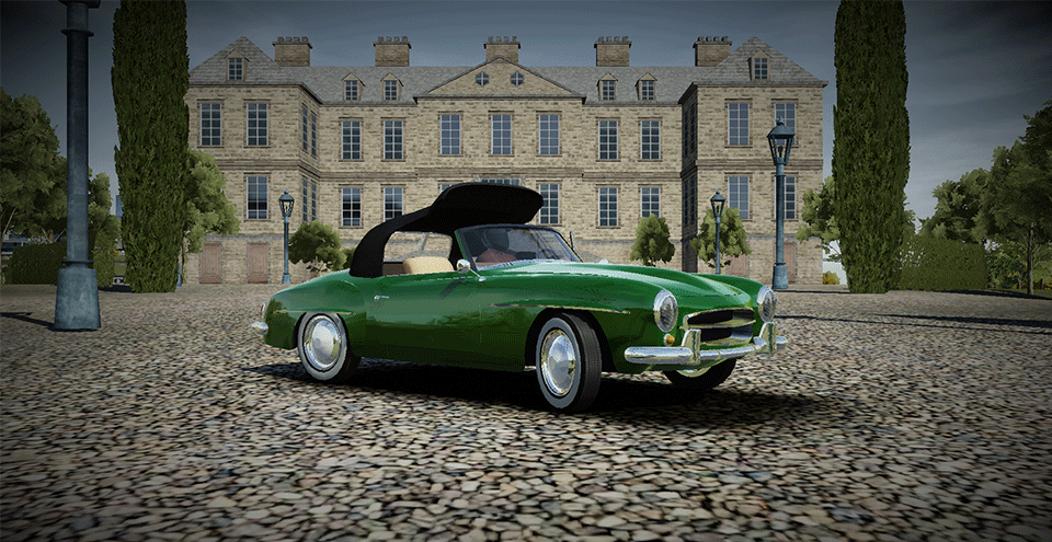 真实欧洲背景设置,高度还原城市和车辆的模型建模