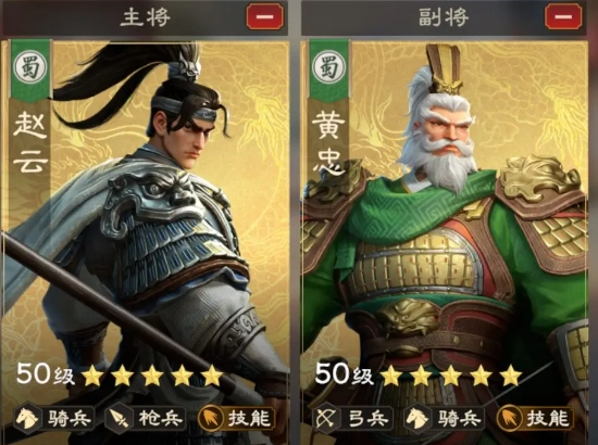 黄忠能够额外增加骑兵队伍的生命值,增强队伍的持续作战能力。当具备良好输出环境时,可借助回怒机制提升队伍的爆发能力。这支队伍爆发性高、生存能力较强,是赵云的顶级配置阵容,建议优先考虑选用。