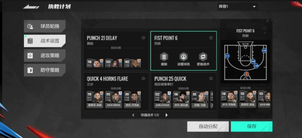 开局前的策略设置也不能忽略哦!进攻策略我选的是侧翼模式,这样更容易触发三分球机会,投进一个三分可就太赚啦!!
