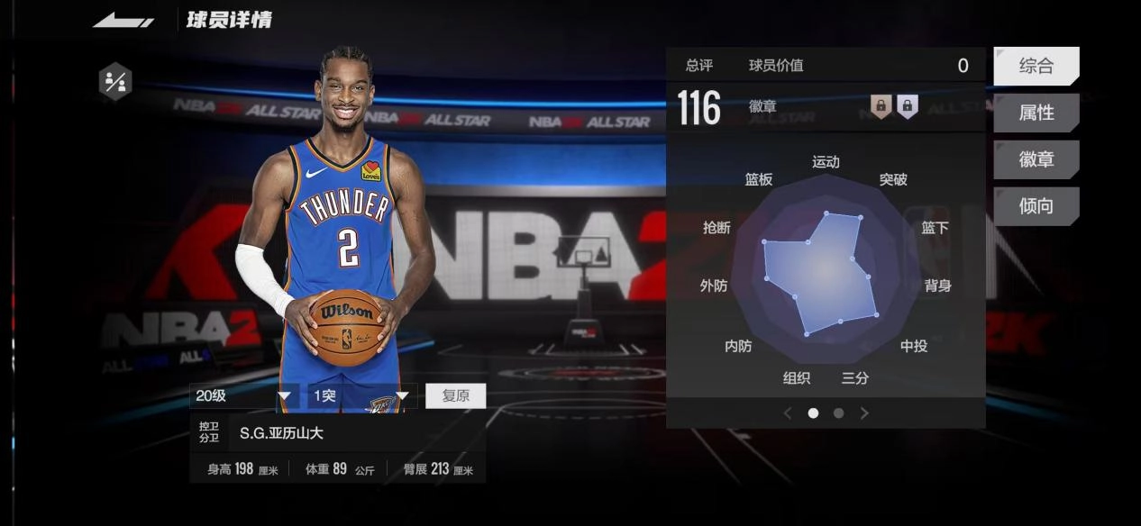 推荐球员:S.G.亚历山大(拥有乔丹式的运球风格,投篮包的出手速度很快,同时还是一位攻防一体的全能后卫)