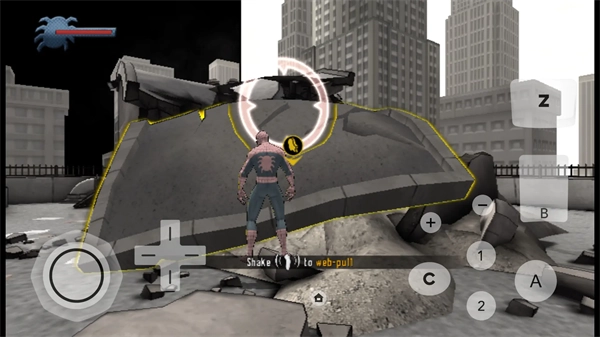 来到楼顶后,点击Tap键进入蜘蛛视觉模式,就能看到被石头压住的碎片。靠近时按住Q键并持续点击,就能击破石头拿到碎片了。