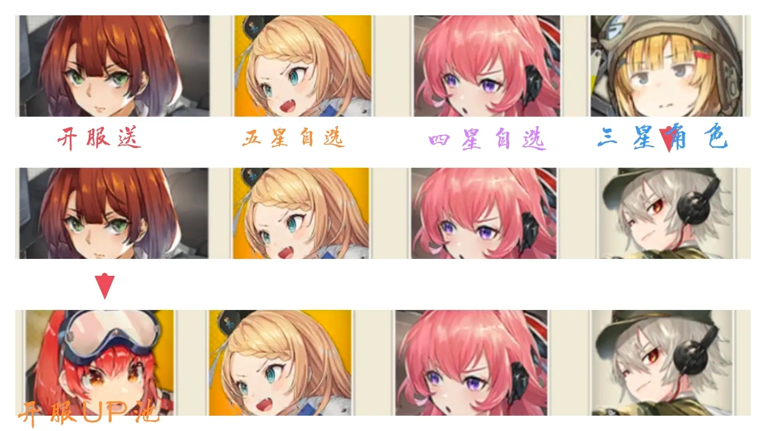 游戏内角色的上线次序和强度表现与国际服存在不同。前期阶段建议玩家刷取带有猫猫的初始账号,这样能让陆军养成线更简便。开服推出的卡池中包含猫猫和裴迪南这两个角色。