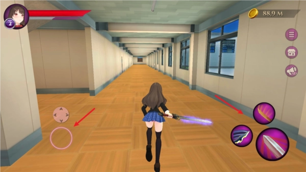 左侧摇杆用于操控人物的方向移动,点击右侧的按钮即可发动剑攻击。