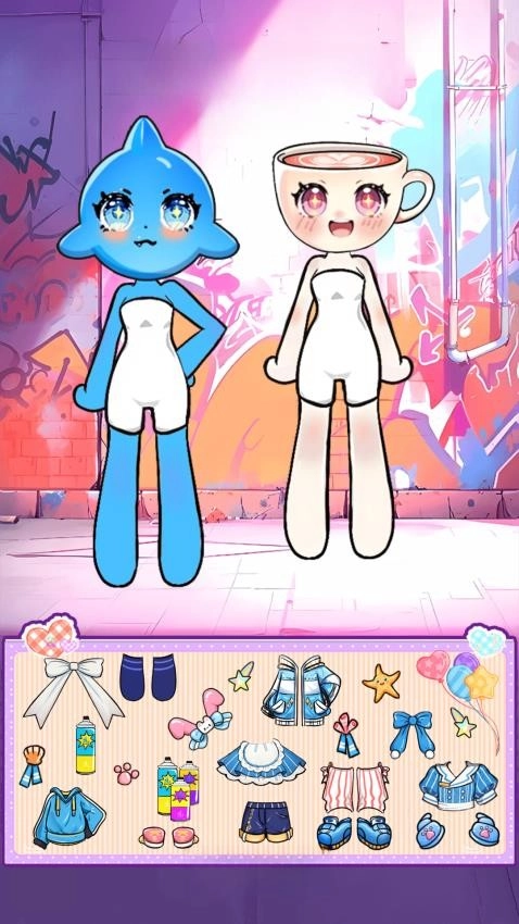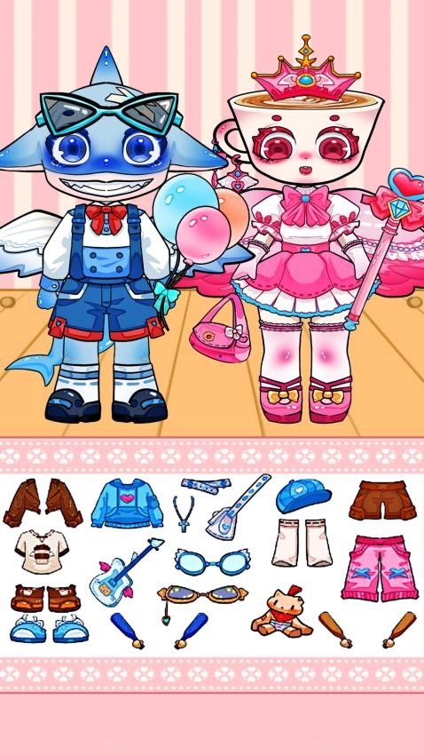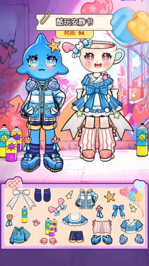从底部的【贴纸栏】里挑选喜欢的贴纸,把它拖拽到对应的角色身上,一步步完成装扮。