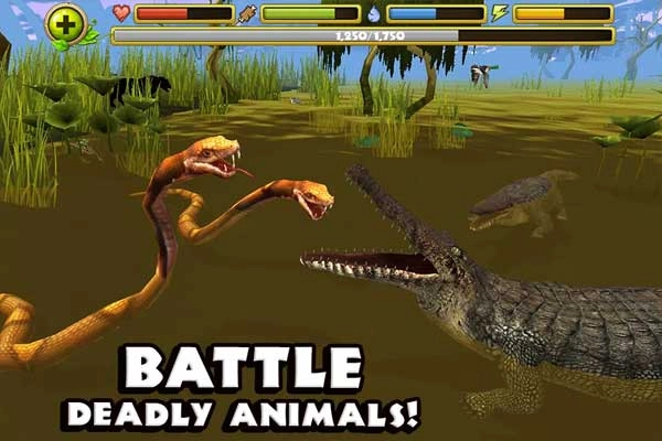 通过战胜其他动物获取经验,进而升级你的鳄鱼,提升它们的生命值、攻击力,还能解锁像死亡翻滚这样的全新攻击技能!