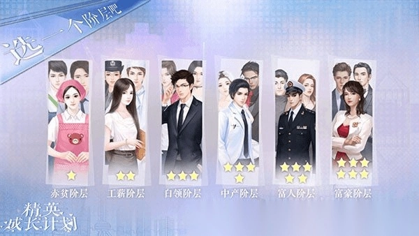 精英成长计划是一款人生模拟类游戏,玩家能在其中体验从零起步的人生历程。你可以自由选择出身背景,规划独特的人生路径,在前行途中结识形形色色的人,甚至邂逅心仪的伴侣,亲手谱写专属于自己的人生故事。