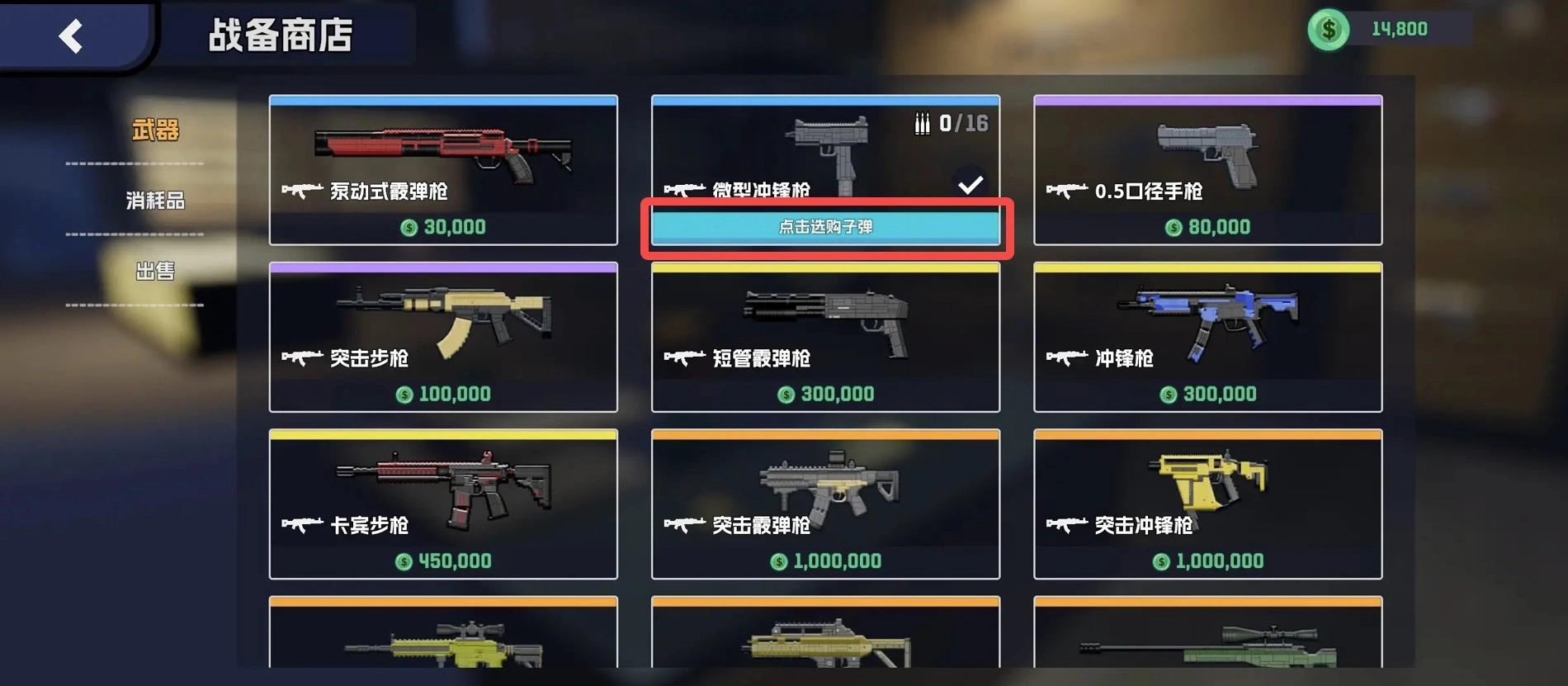 等你攒够买武器的钱之后,可别忘了买~子~弹。
