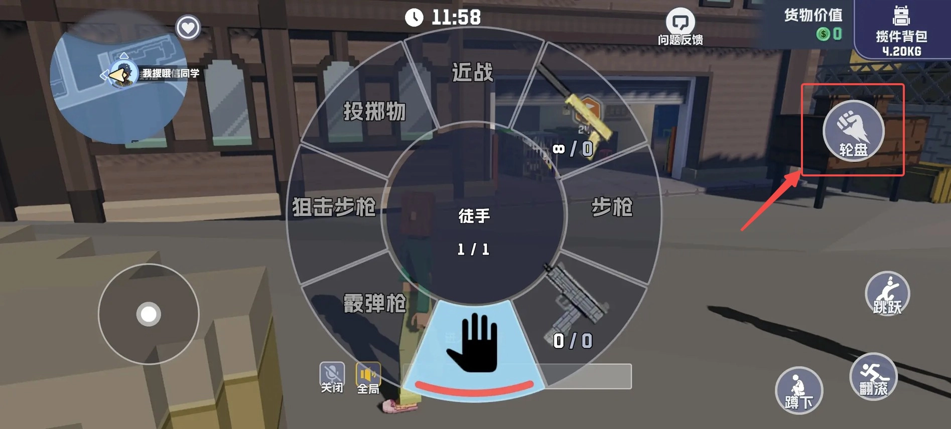 打开轮盘,选择武器。