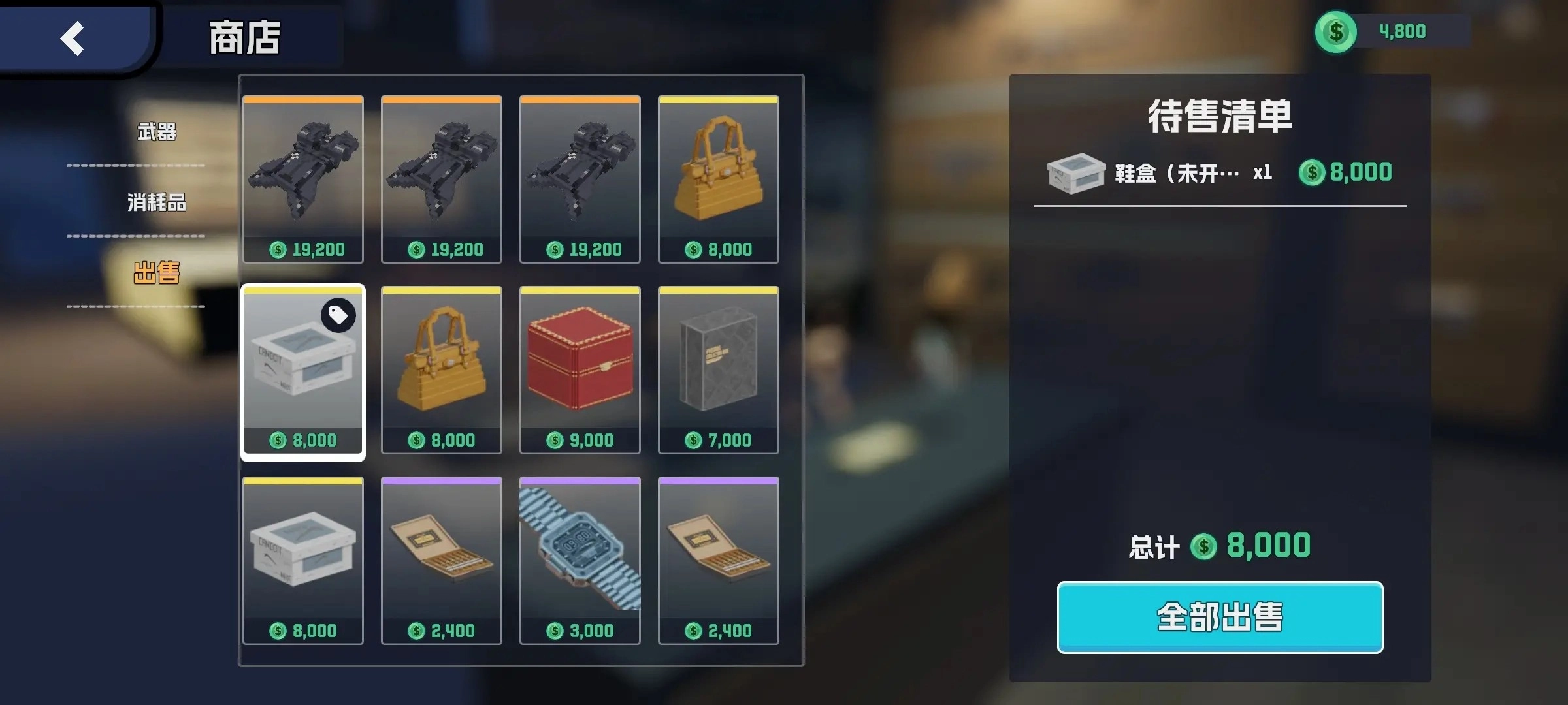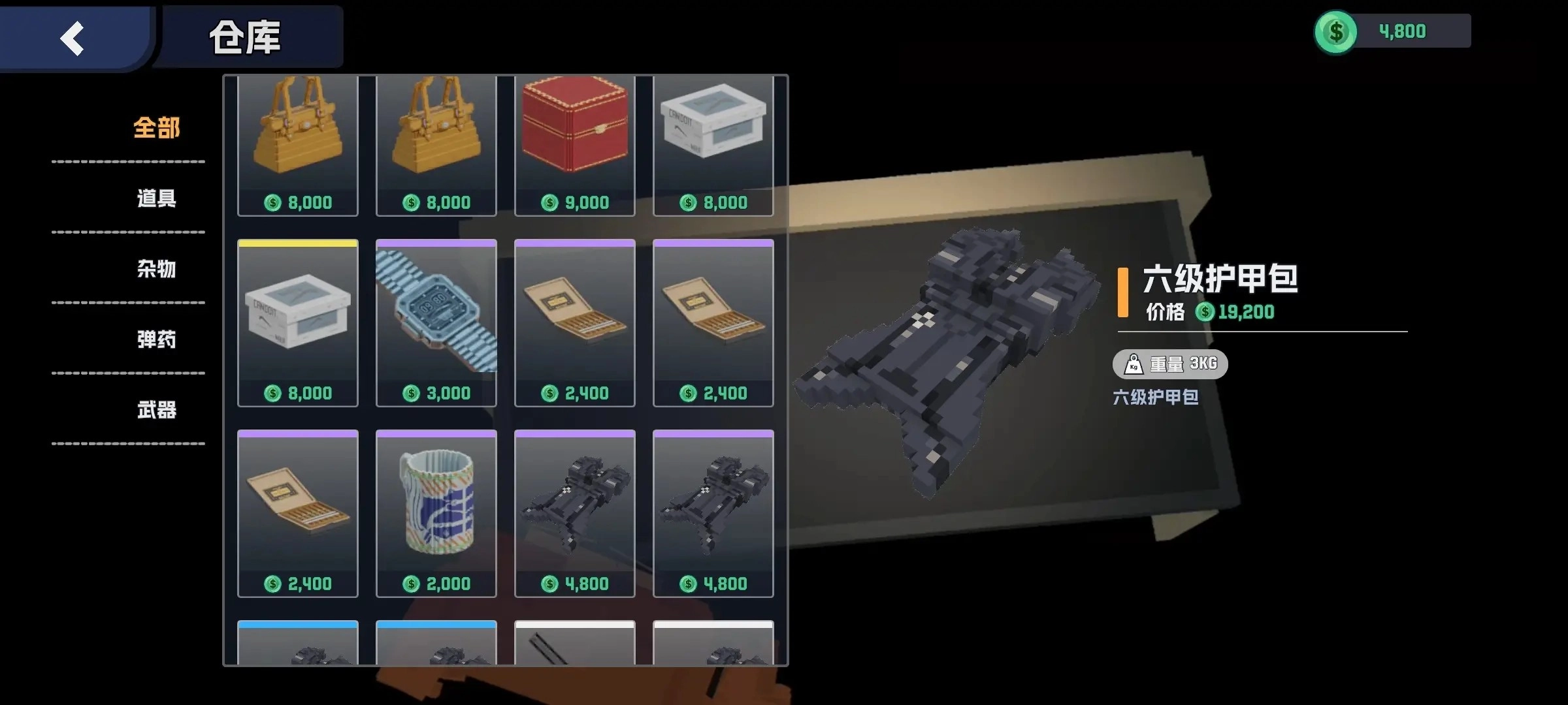 回到安全屋后,你能够在仓库里观赏自己这次行动带出来的货品。