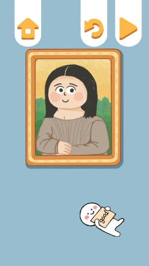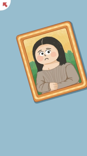 第四关里,画像上的女孩看起来不太开心,把画像调整到端正的位置,你就能看到女孩露出笑容了。