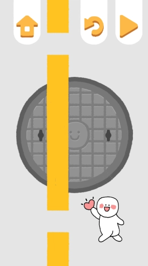 第三关就更简单了,只需要转动井盖,让黄线连起来就行。