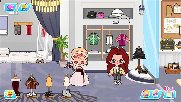 游戏采用经典的卡通画风,游玩体验相当有趣;你可以随时和NPC进行简单互动,还能进入房间自由设计。