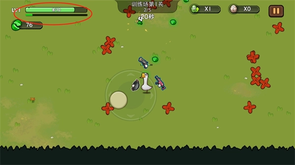 进入游戏后通过摇杆操控“鹅霸”灵活躲避敌人攻击;