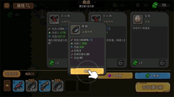 收集随机效果道具,根据不同阶段战况选择增益元素;