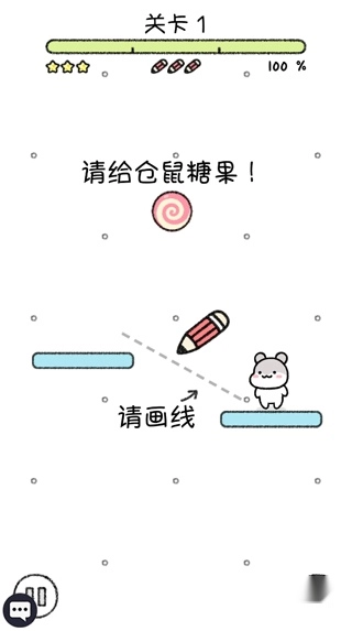 通过划线使掉落的糖果能够直接落入小仓鼠