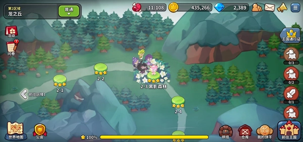开局如果没拿到首冲奖励,也没抽到高阶饼干的话,打到第二区域的地图就得手动操作推图了。第一天体力比较紧张,就算没满星也不用纠结,直接往下一关推进就行。等主线推完,后面饼干等级升上来了,再回来借着等级优势把没满星的关卡补满星。