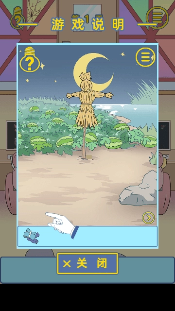 过关方法:先点击自己的背包两次获取金钵,接着将金钵拖动到远处的塔;然后点击自身右前方的草丛拿到竹棍,最后把竹棍拖到自己右边的草丛即可过关。请注意严格按照这个步骤顺序操作。