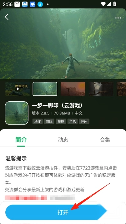你可以先在手机上安装7723游戏盒与鲸云漫游这两个应用,接着打开7723游戏盒,在搜索栏输入“一步一脚印(云游戏)”进行查找,找到后就能开始游玩了。