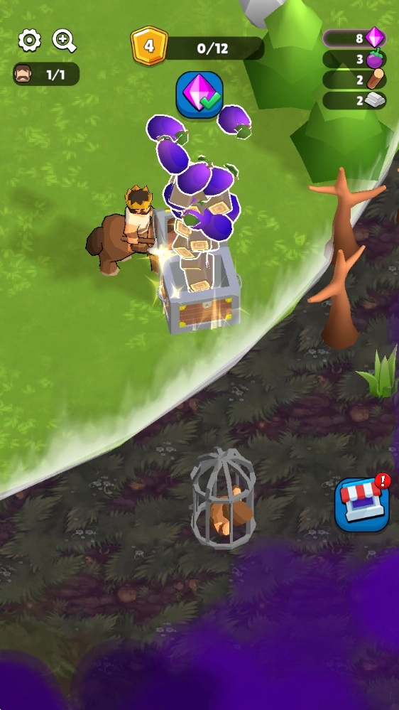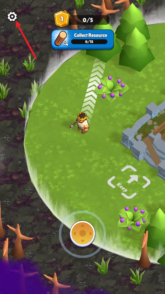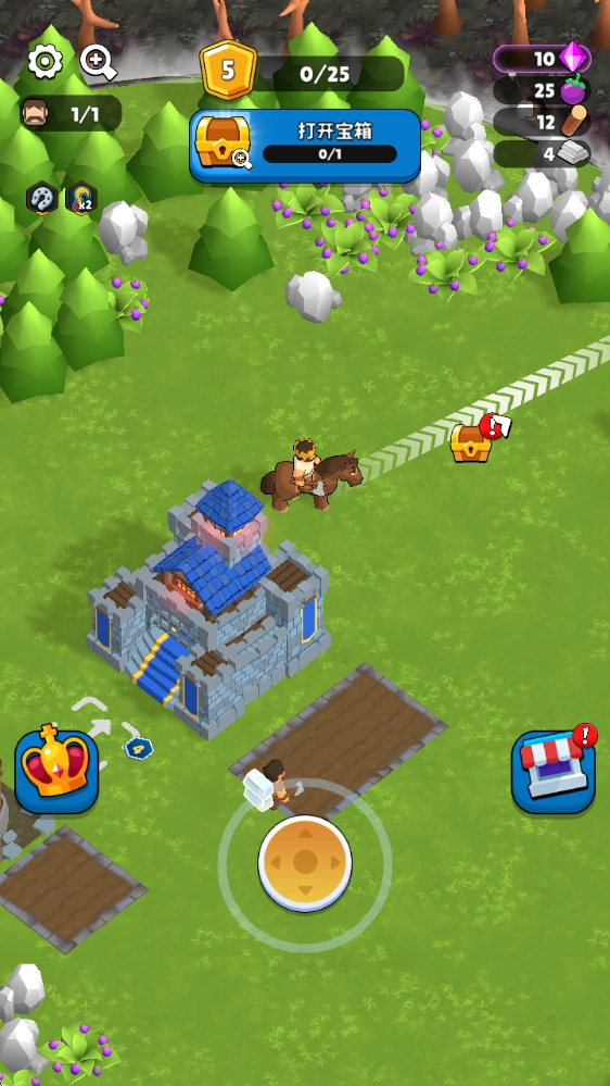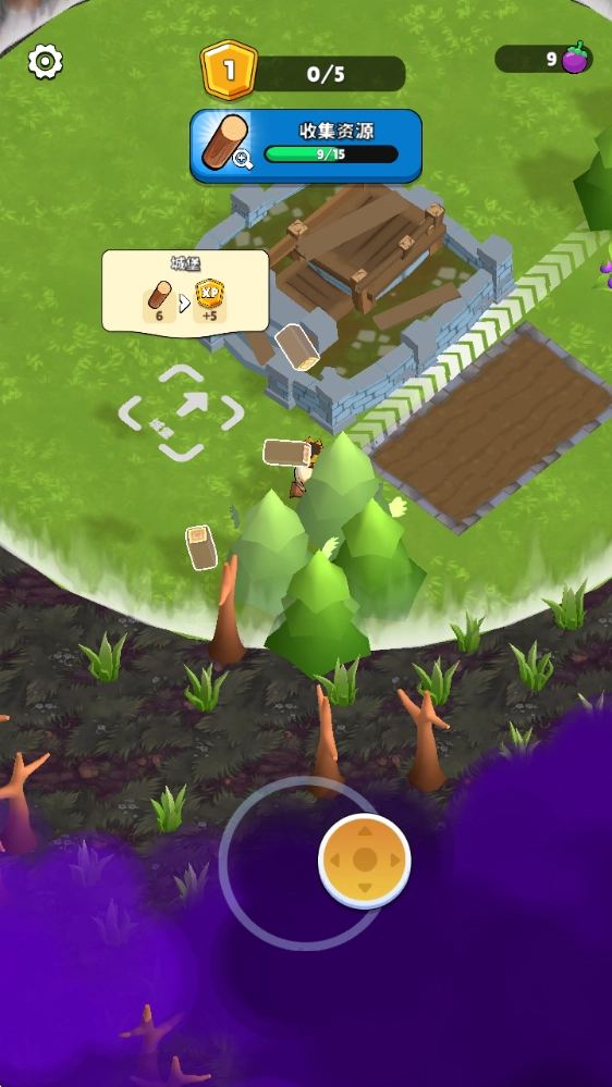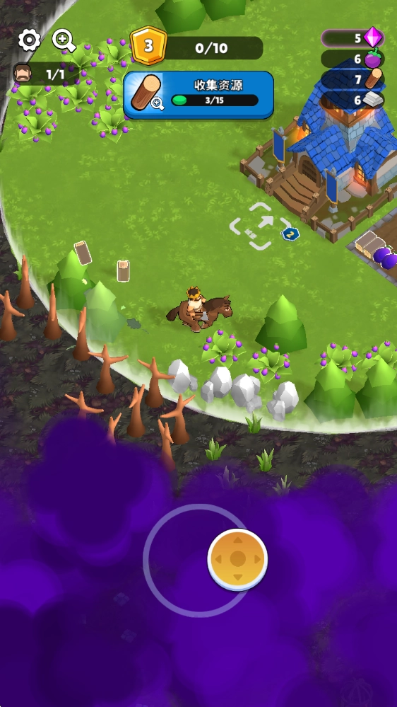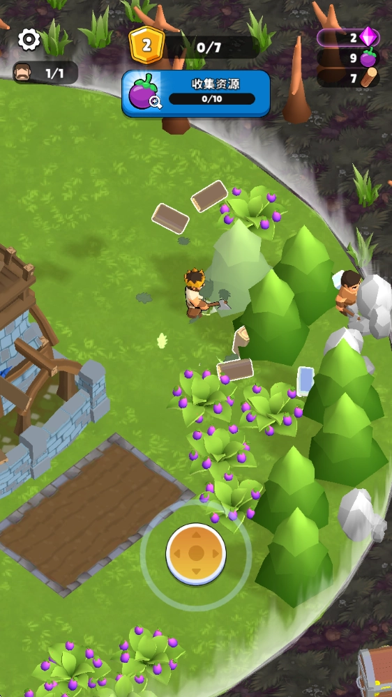 进入游戏后,拖动下方的摇杆就能移动,靠近资源就能采集。