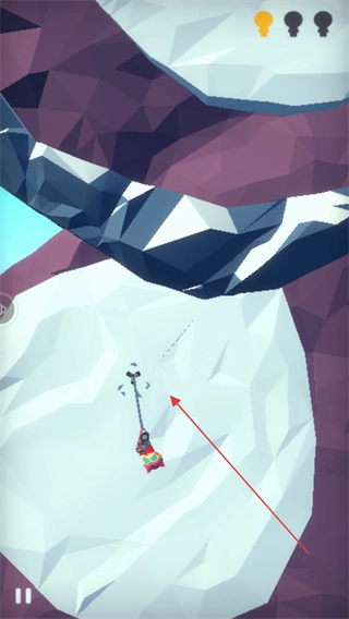 借助绳索的摆动来调整角色的位置,躲开岩壁等障碍,朝着目标方向前进。