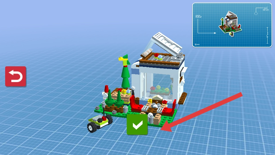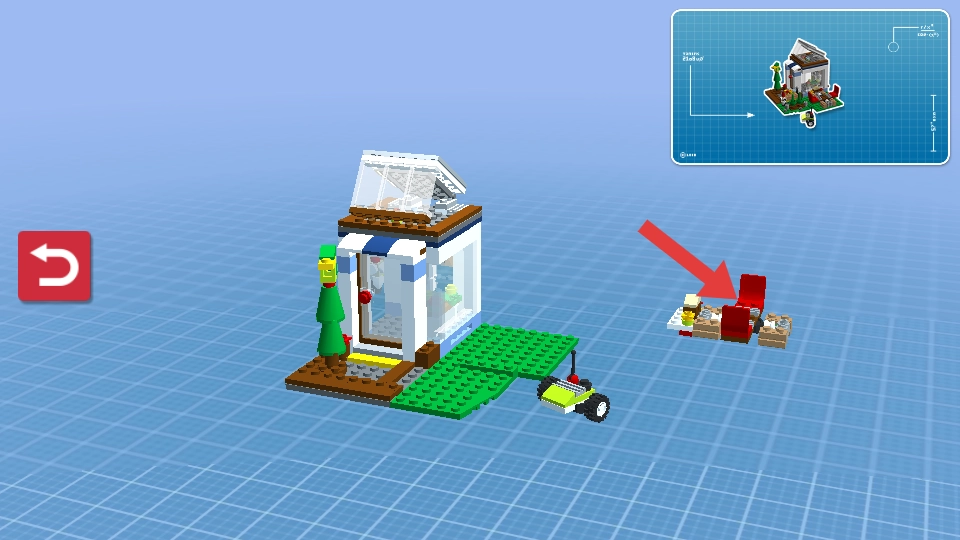 进入搭建界面后,对照右上角的蓝图,先辨认出需要拼装的组件,再挑选对应的乐高积木,按照红箭头指示的位置进行精准拼接,逐步完善建筑的各项设施。