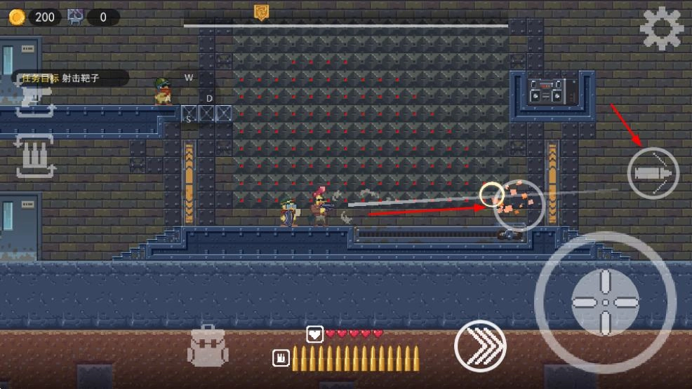 操控角色移动可借助W、A、S、D这类按键,当接到“射击靶子”任务后,点击射击按钮对靶子发起攻击,以此推动任务进展。