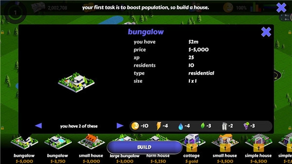 你可以通过拖动或点击目标位置来定位建筑,以此提升城市的人口数量。