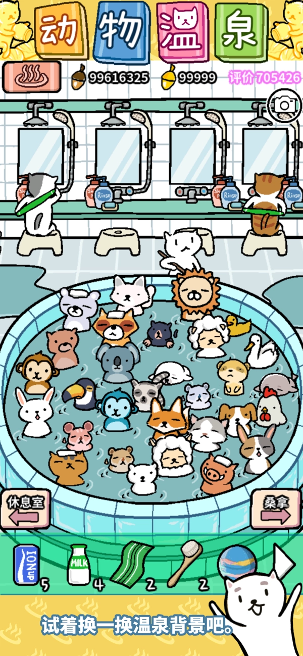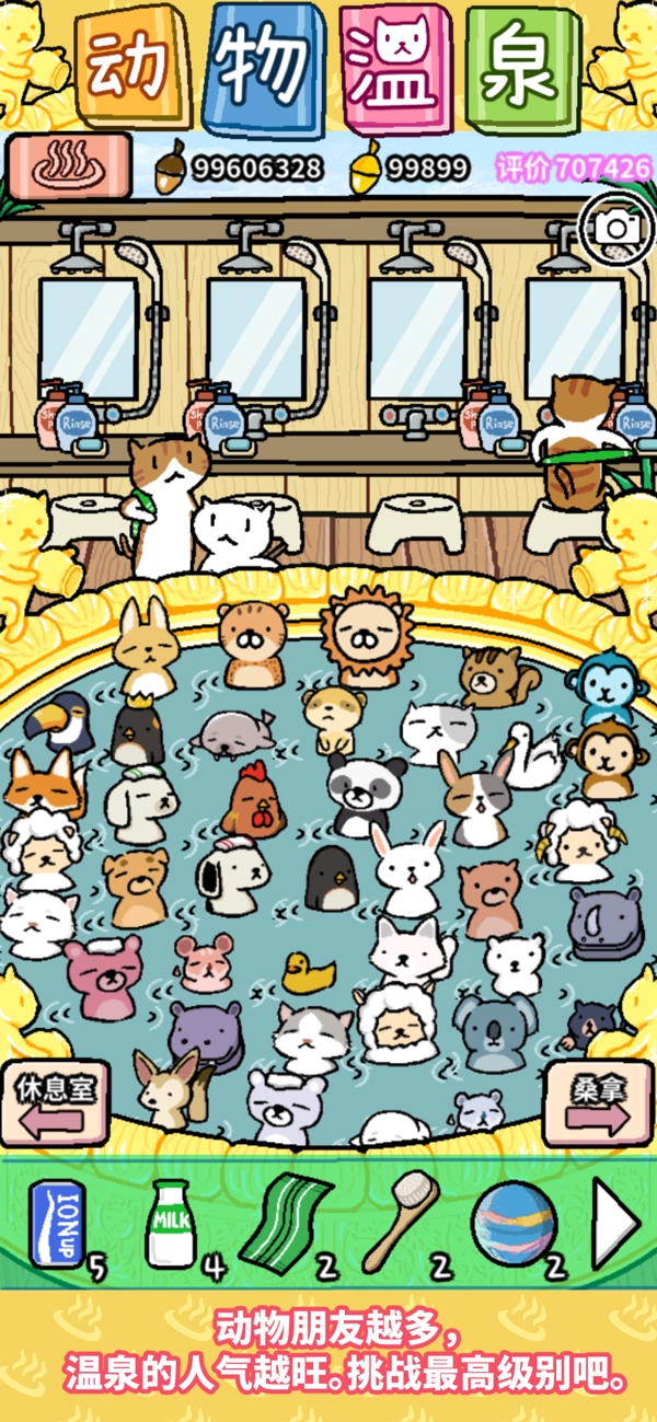 动物朋友越多,温泉的人气越旺。挑战最高级别吧!