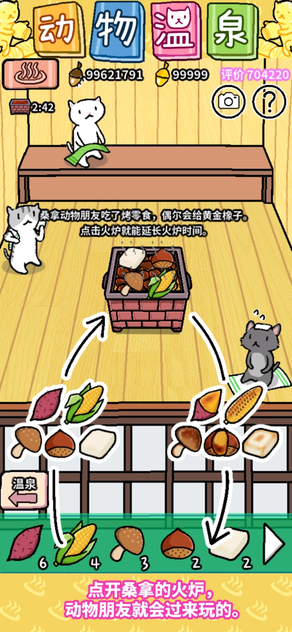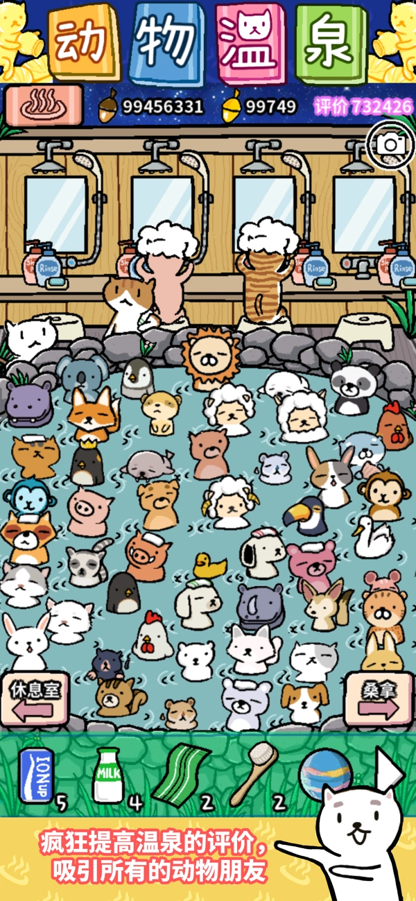 温泉的评价越好,能邀请来的动物伙伴就会越多,一定要好好招待每一位动物朋友呀!